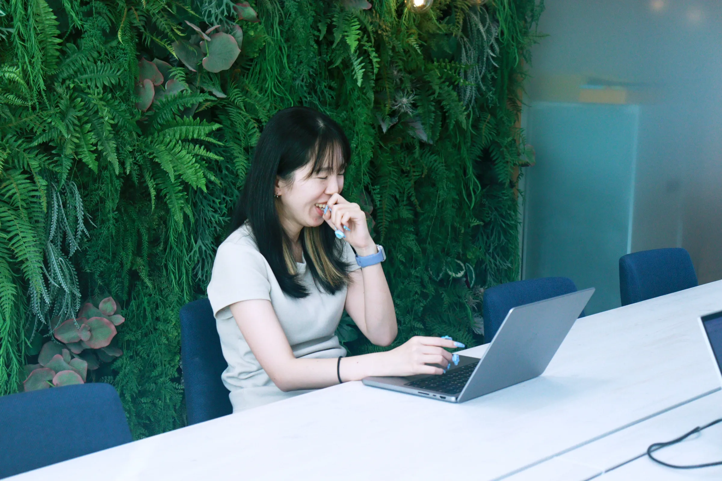 ありがとうございます(笑)。スーツだとちょっと働きにくいなと感じるので、自由な服装はいいですね。